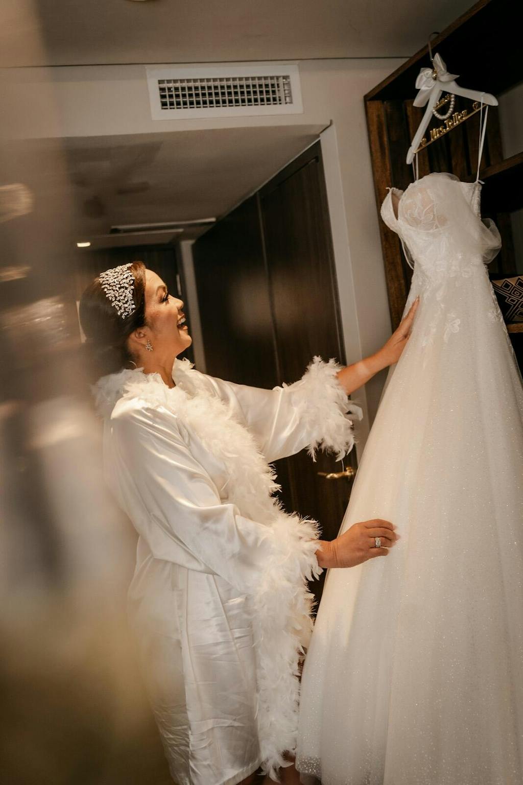 Ellee Real Bride Adorned with RAIYA Swarovski Bridal Headpiece