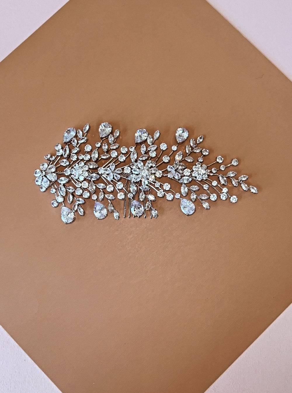 An eccentric collection of chic headpieces truly ties the bridal look together. Whether an Ellee bride is bohemian, modern, or traditional, one cannot overlook hair accessories. From sleek and sculptural to ultra-modern and minimalist Ellee Couture Boutique has it all intricate with Swarovski crystals, cubic zirconia crystals and freshwater pearls with beautiful arrangements.