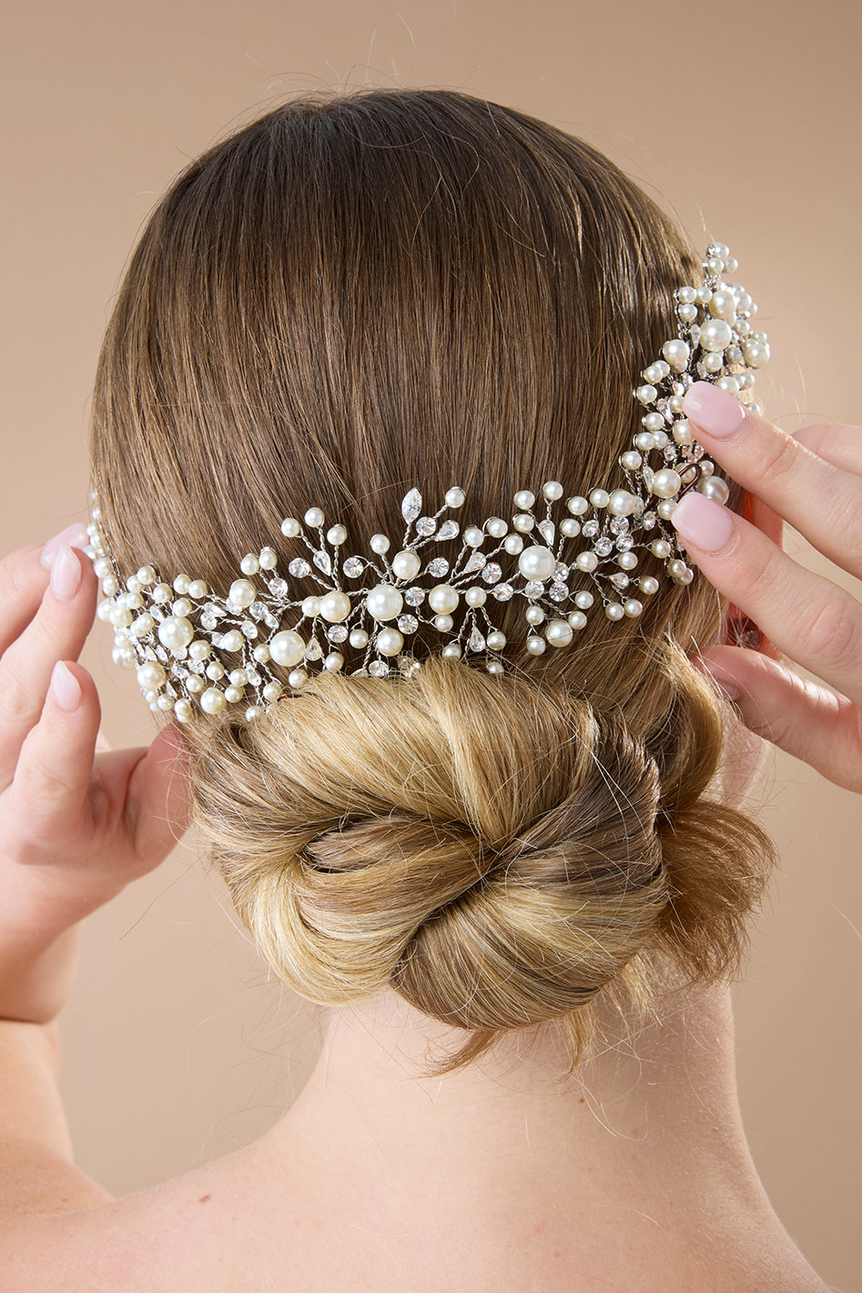 All of our crowns and tiaras come in a standard head size. However, we offer customization services to adjust the size for a more precise fit, ensuring your headpiece fits comfortably and beautifully on your special day.