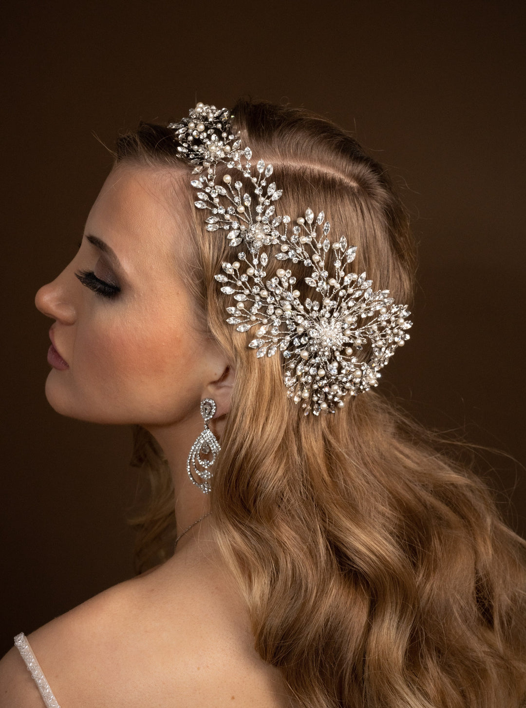 The range of headpieces for wedding celebrations includes everything from tiaras and crowns to more understated clips and pins. Each style is designed to cater to different bridal looks, whether you're aiming for simplicity or statement-making elegance.