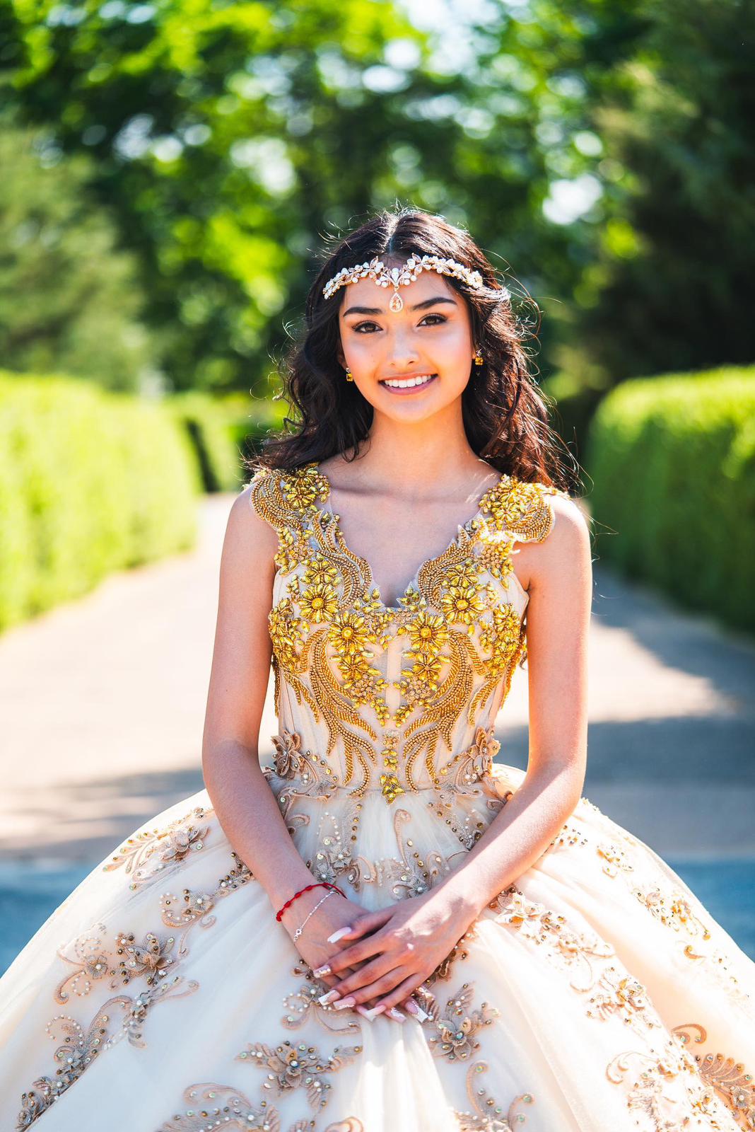Most of our quinceañera tiaras and crowns are designed to fit a variety of head sizes. Featuring loops at the end of all our crowns and tiaras and loops on the inside edge of all our full crowns to help your hair stylist secure your headpiece to your styled hair. If you have specific concerns about how to secure the crown to your hair, our customer service team is more than happy to provide guidance and ensure you find a tiara or crown that fits you perfectly.