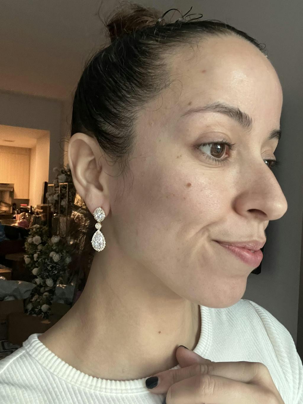The earrings can be styled with most of our wedding headpieces, Bridal Tiaras and Crowns.