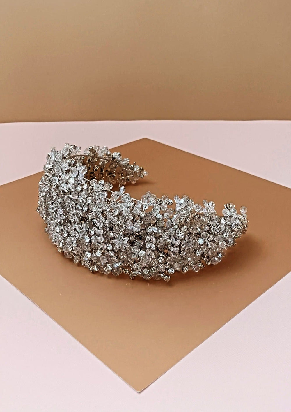 Select a bridal hairband that harmonizes with your hairstyle and wedding theme. Consider the detailing on your dress and the overall formality of the occasion to ensure the headband enhances rather than overshadows your bridal look.