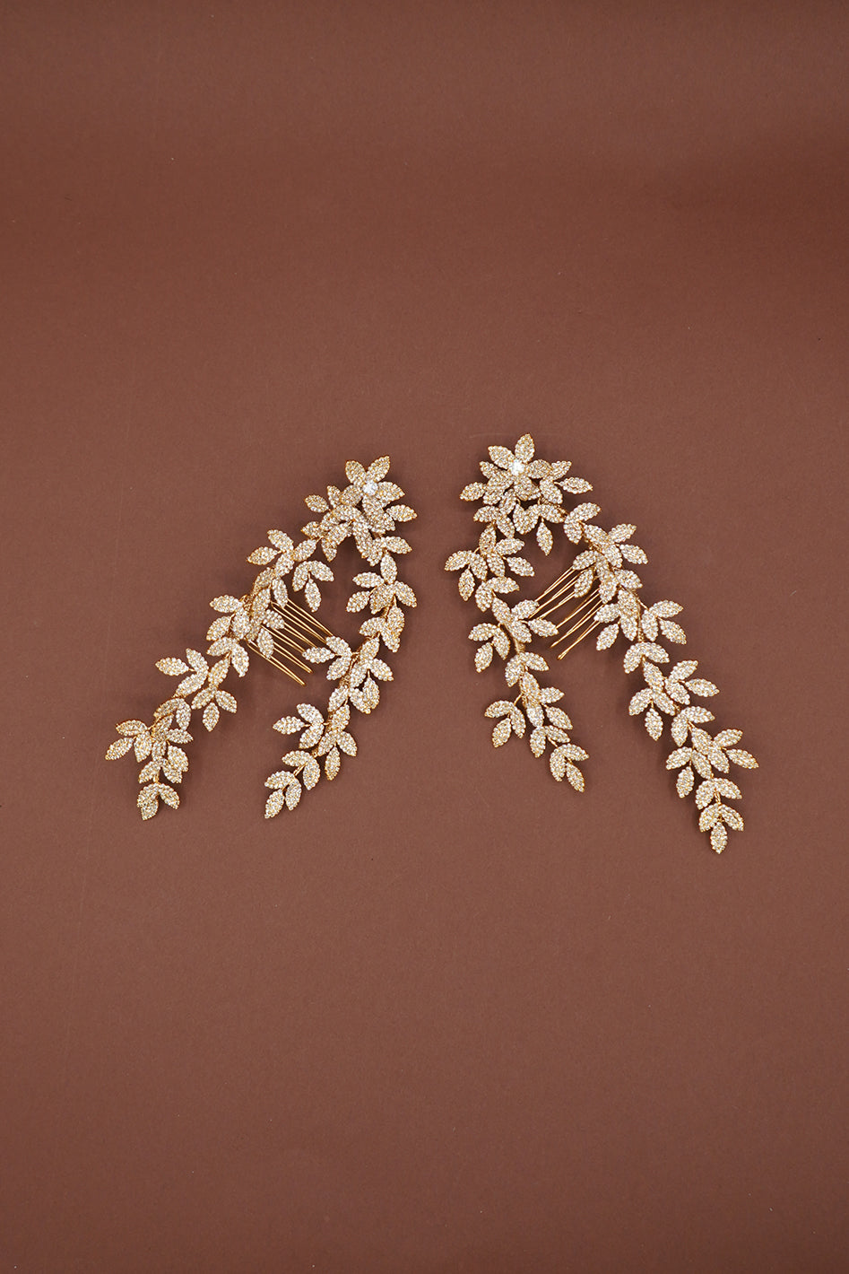 Most Gorgeous and Brilliant Swarovski Hair Comb. KATIA Swarovski Bridal Hair Combs and Wedding Headpiece is Gorgeous leaves with Cubic Zirconia Design and it can be styled as Wings on both sides or only one side. This Luxurious Elegance can be also styled on the Sides or back of the Hair Design.