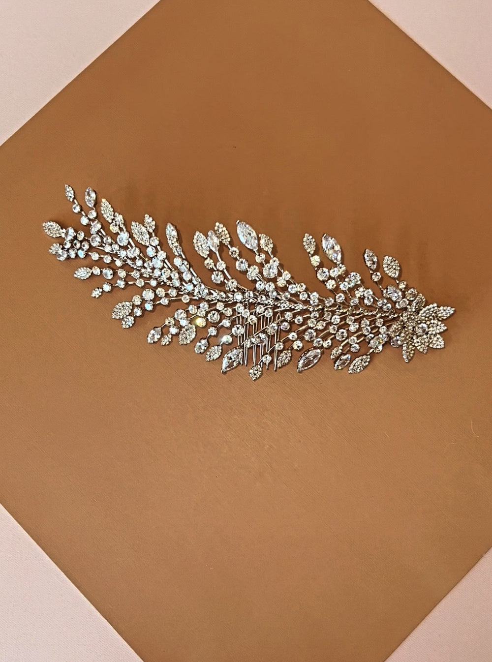 An eccentric collection of chic headpieces truly ties the bridal look together. Whether an Ellee bride is bohemian, modern, or traditional, one cannot overlook hair accessories. From sleek and sculptural to ultra-modern and minimalist Ellee Couture Boutique has it all intricate with Swarovski crystals, cubic zirconia crystals and freshwater pearls with beautiful arrangements.