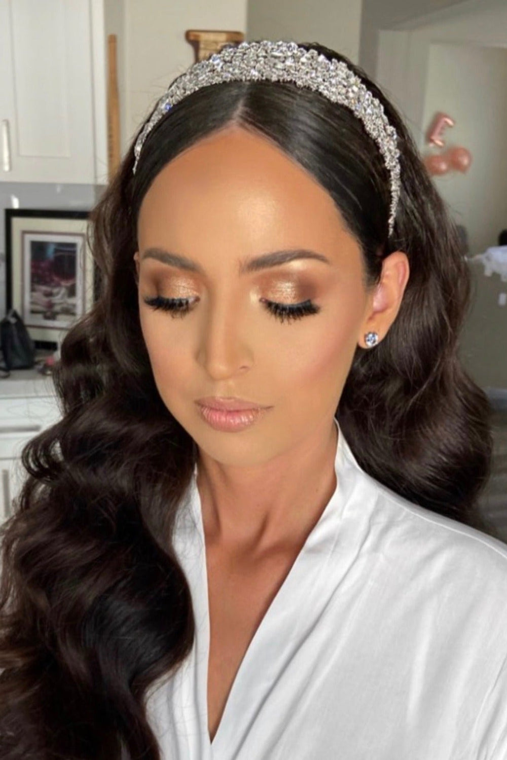 Ellee Real Bride Adorned with ELIANNA Simulated Diamond Wedding Headband
