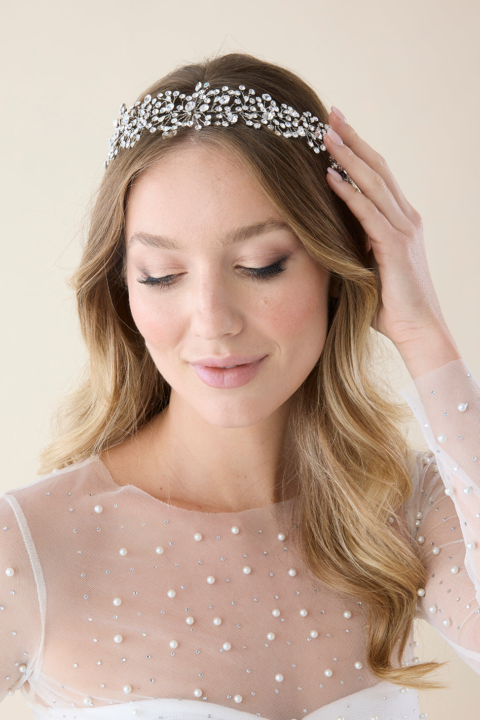 A hair vine is a flexible and ornate accessory designed to weave through your hair, resembling the natural growth patterns of vines. Typically adorned with elements like Swarovski crystals or pearls, hair vine accessories offer a versatile and elegant way to enhance any bridal hairstyle.