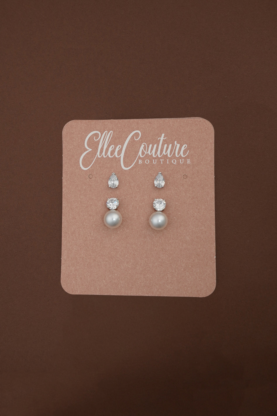 Our LACE Pearl and Simulated Diamond Earring Bundle features a timeless and dainty pearl stud design arranged beautifully with a round Simulated Diamond crystal, paired with one daintier tear drop stud created to be the perfect size to add sparkle and variety in your overall look.  These dainty yet sophisticated earrings are amazing to wear as an everyday look and at a special occasion event.