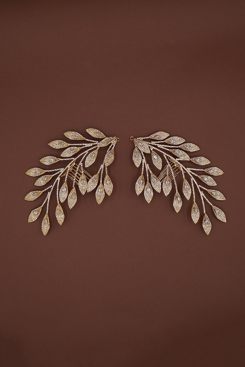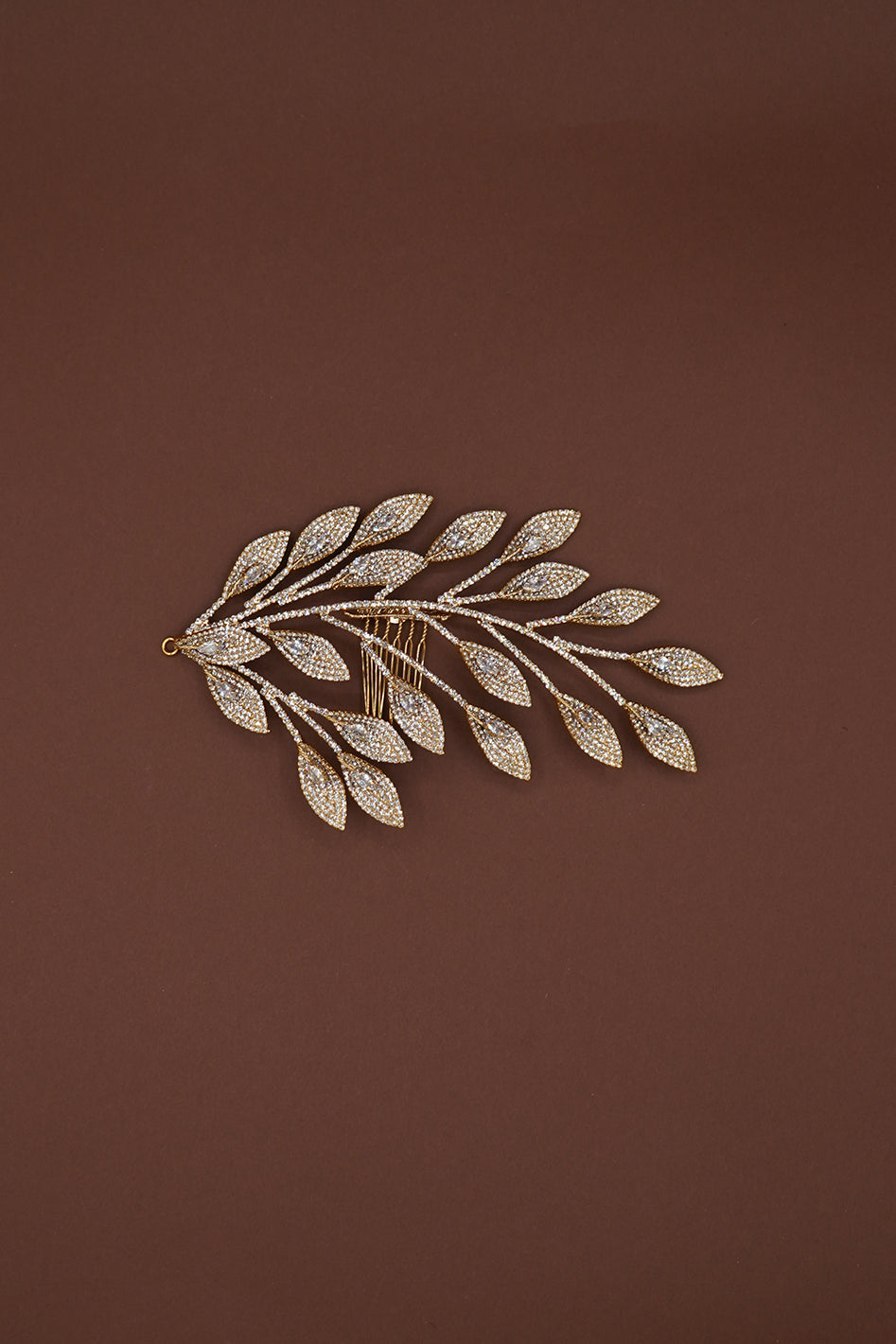 Our APRIL Gorgeous Swarovski Hair Comb that comes with Luxurious Swarovski Crystals and Simulated Diamond Crystals. The APRIL Hair comb has a 3D affect with beautifully arranged leaves filled with stunning crystals. It is a gorgeous bold headpiece for the side of any hairstyle. It can be styled on one side, on the back of the hair style or as Wings on both of the sides. It comes in two sizes.